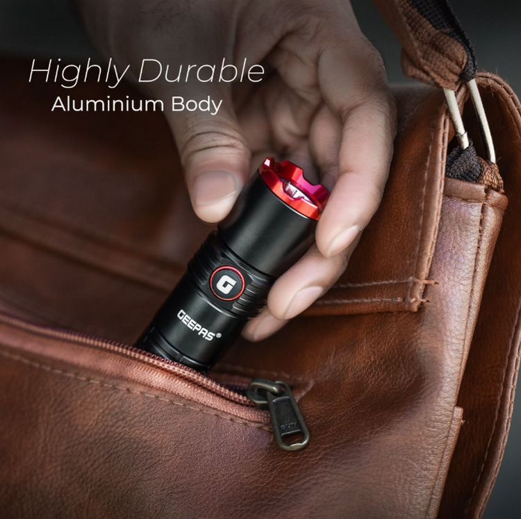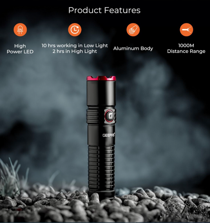 6) عملکردهای چندگانه: چه در حال کمپینگ یا پیاده روی در اواخر شب باشید، چراغ قوه LED قابل اعتماد Geepas همراه خوبی است. این یک چراغ قوه دستی ایده آل برای استفاده در اطراف خانه یا در مواقع اضطراری است. دارای حالت های بالا، متوسط، کم، فلش و سوئیچ SOS است.
