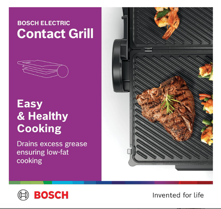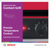 کنترل دقیق دما برای پخت و پز همه کاره و بدون دردسر: دمای مورد نظر خود را با ترموستات قابل تنظیم برای پخت یکنواخت و عالی انتخاب کنید. سه موقعیت گریل تماسی بوش تطبیق پذیری و راحتی را ارائه می دهد.