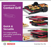 2000 وات کارایی بالا: گریل با عملکرد سطح بالا بوش در صورت تقاضا دارای رتبه قدرتمند 2000 وات است که گرمایش فوقالعاده سریع و حفظ سطح بالای خروجی حرارت را تضمین میکند. این منجر به پخت سریعتر و نتایج عالی می شود.