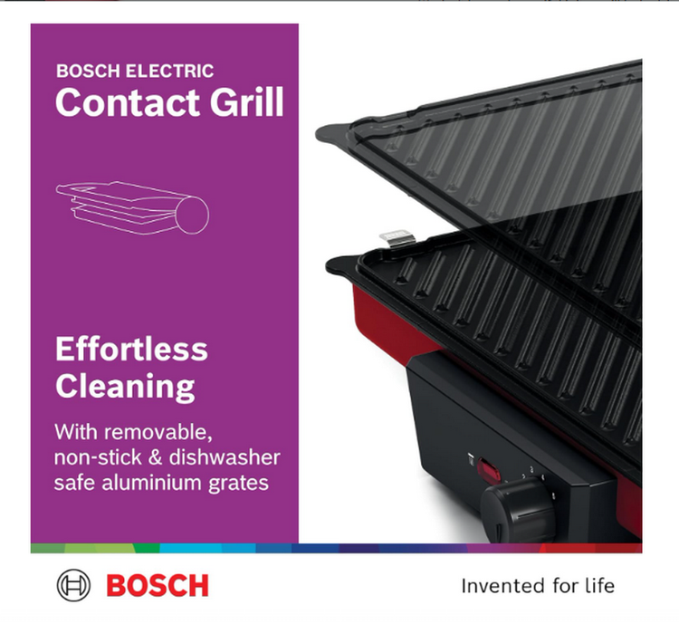 تمیز کردن بیدردسر با صفحات کبابپز آلومینیومی قابل جابجایی: تمیز کردن بعد از غذا دیگر دردسرساز نیست. صفحات کباب پز در این گریل تماسی بوش که از آلومینیوم ساخته شده اند و دارای روکش نچسب هستند، برای نگهداری آسان در ماشین ظرفشویی قابل شستشو هستند.