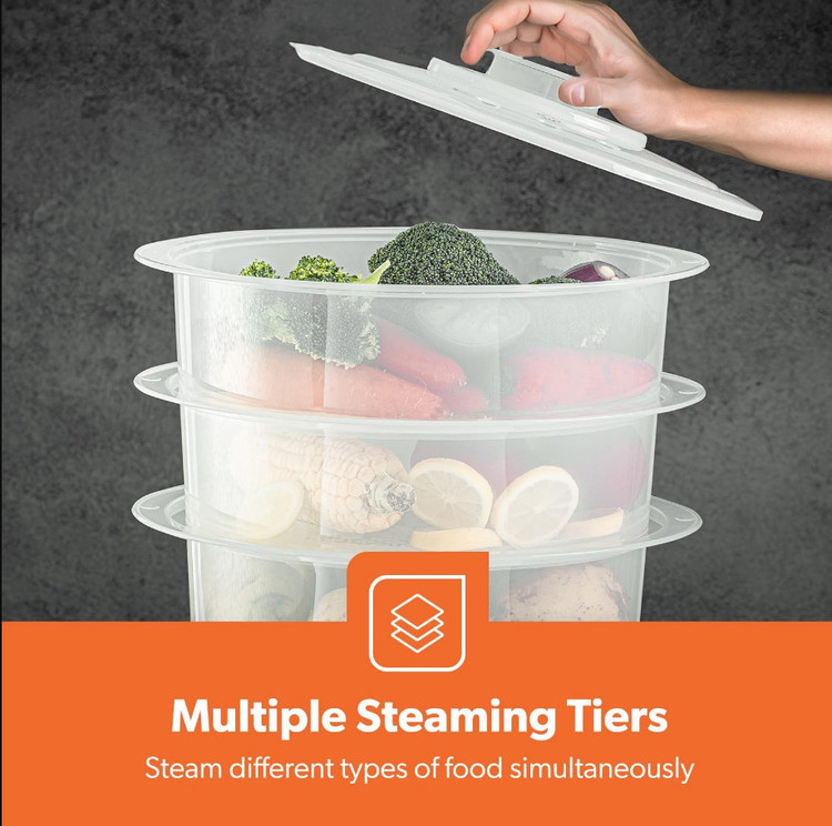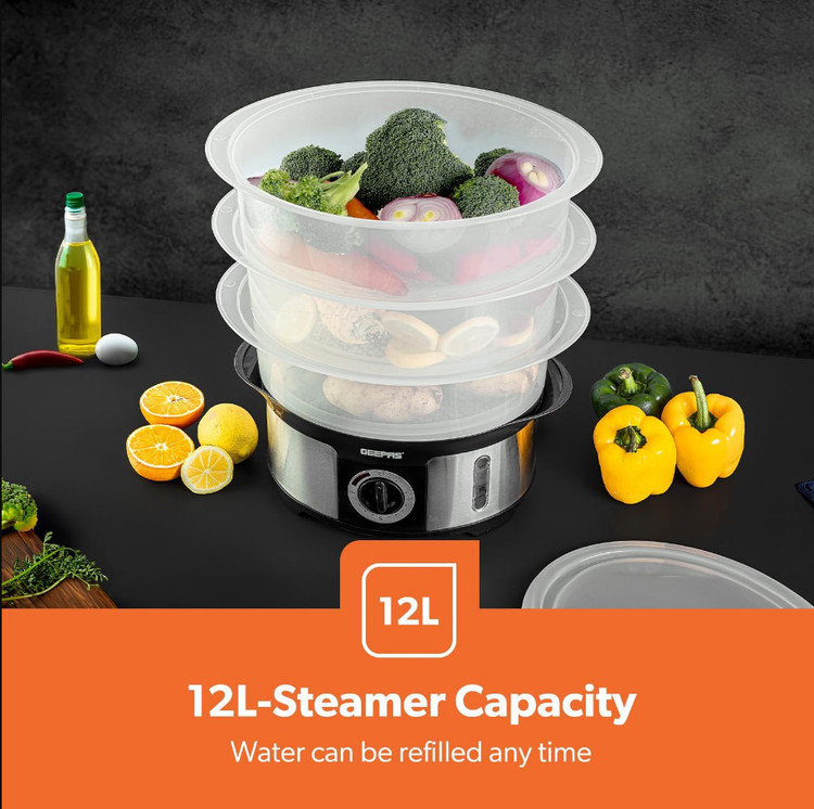 It comes with 3 transparent bowls with 4L capacity each, ideal when entertaining guests or cooking for larger families. Bowls are transparent, allowing you to see the food while cooking / steaming. Ideal for steaming vegetables, meat & fish, provides one of the healthiest ways to cook while retaining nutrients & vitamins.