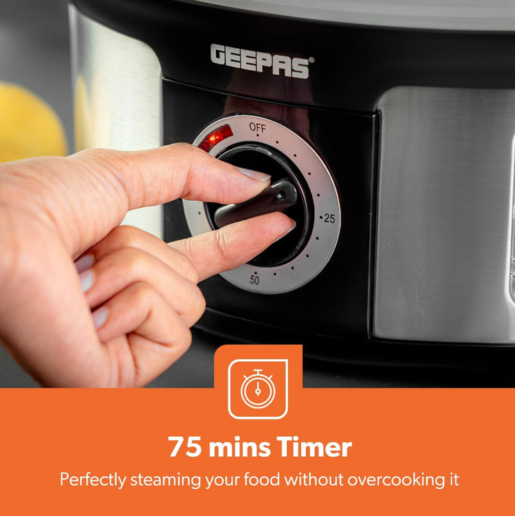 تایمر 75 دقیقه - با تایمر تنظیم می شود، تا 75 دقیقه پخت می شود. هنگامی که تایمر به 0 برمی گردد یا در مخزن پایه آب وجود ندارد، زنگی به صدا در می آید و بخارپز خاموش می شود.