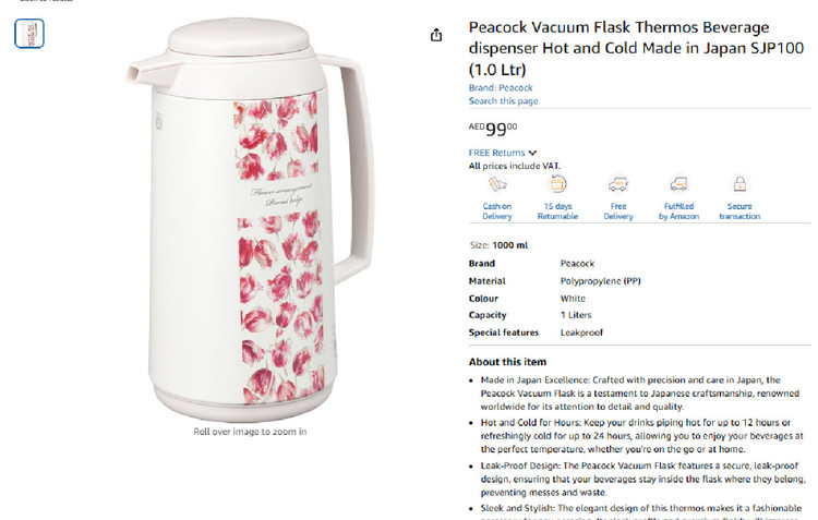 ساخته شده در ژاپن : فلاسک خلاء پیکوک که با دقت و دقت در ژاپن ساخته شده است گواهی بر هنر ژاپنی است که به دلیل توجه به جزئیات و کیفیت در سراسر جهان مشهور است.