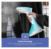اتو عمودی: این بخار پز همه کاره دارای یک برس بخار است که به آرامی پرزها و موهای حیوانات خانگی را هنگام بخارپز کردن از بین می برد. قابلیت اتوی عمودی آن به شما این امکان را میدهد تا چروکهای لباسهای آویزان، پردهها و اثاثه یا لوازم داخلی را بدون زحمت صاف کنید و در وقت و تلاش شما صرفهجویی کنید.