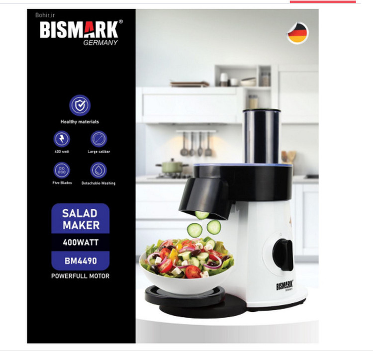سالاد ساز بیسمارک BM4491 با طراحی زیبا و کاربردی، تهیه سالادهای تازه و خوشمزه را برای شما آسان می کند. این محصول با موتور قدرتمند 400 واتی و تیغه های برنده، به سرعت و سهولت انواع سبزیجات را خرد و برش می دهد. بدنه این سالاد ساز از مواد باکیفیت و بهداشتی ساخته شده و تمامی قطعات آن قابل جدا شدن و شستشو هستند. با استفاده از این محصول، می توانید در کمترین زمان و با کمترین تلاش، سالادهای متنوع و مغذی برای خود و خانواده تهیه کنید. سالاد ساز بیسمارک، انتخابی هوشمندانه برای یک زندگی سالم و پر انرژی است.