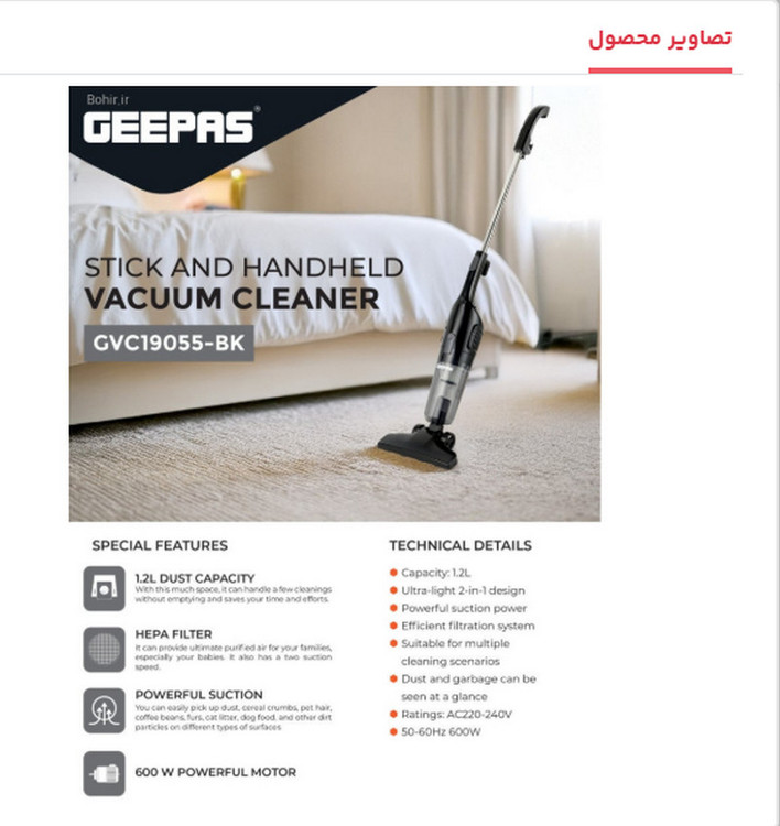 - طراحی 2 در 1 ایستاده و دستی برای راحتی بیشتر در نظافت خانه و محیط کار