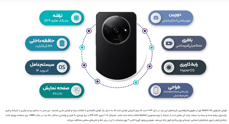 گوشی موبایل شیائومی مدل Redmi A3 ظرفیت 128 گیگابایت رم 4 گیگابایت