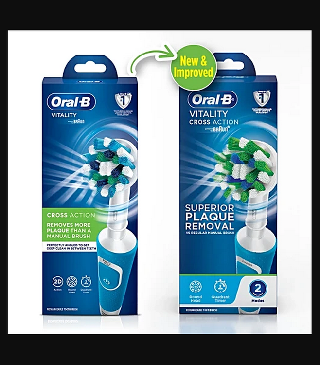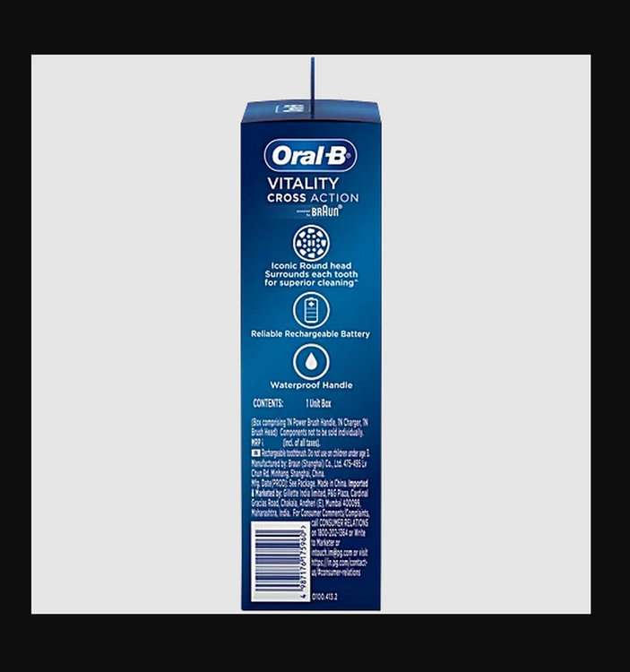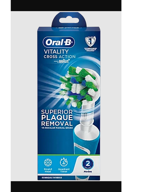 Oral-B VITALITY 100 Blue را از برند شماره 1 توصیه شده توسط دندانپزشکان در سراسر جهان تجربه کنید. مسواک برقی VITALITY100 Blue به شما کمک می کند تا همانطور که دندانپزشک توصیه می کند به مدت 2 دقیقه با تایمر حرفه ای مسواک بزنید و هر 30 ثانیه به شما اطلاع می دهد که ناحیه ای را که مسواک می زنید تغییر دهید. در حالی که مسواک را در اطراف دهان خود حرکت می دهید، سر مسواک Cross Action هر دندان را با پرزهایی با زاویه 16 درجه احاطه می کند و عملکرد تمیزکننده دوبعدی برای از بین بردن پلاک بهتر از یک مسواک دستی معمولی نوسان می کند و می چرخد. FlossAction، TriZone، Dual Clean، Power Tip، Ortho Care.