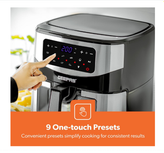 سرخ کن دیجیتال ۹.۲ لیتری با قفسه برای تهیه خوشمزه ترین غذاها و تنقلات بدون روغن و تا ۸۰ درصد چربی کمتر. مجهز به نمایشگر دیجیتال LED، صفحه نمایش لمسی، ۹ برنامه پخت از پیش تنظیم شده و تایمر ۶۰ دقیقه ای. سرخ کن بدون روغن دیجیتال از فناوری سرخ کردن هوای VORTEX استفاده می کند، که غذا را ۳۰ درصد سریعتر طبخ می کند در حالی که ۹۹ درصد روغن کمتری مصرف می کند و در نتیجه نتایجی خوشمزه و بدون چربی دارد. دارای یک پنجره دید و یک لامپ داخلی است که به شما امکان می دهد بدون باز کردن سرخ کن، فرآیند پخت و پز را کنترل کنید. مناسب برای پخت و پز بدون روغن و درست کردن سیب زمینی سرخ کرده، نان، کیک، گوشت، مرغ، استیک و غیره.