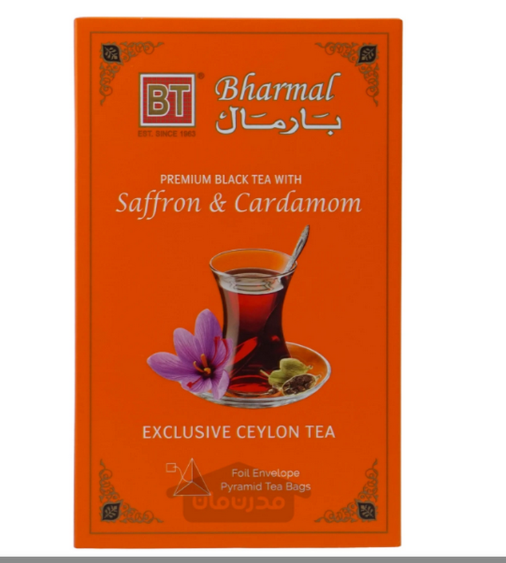 چای سیاه کیسه ای هرمی درجه یک زعفران و هل 40 گرم بارمال Bharmal