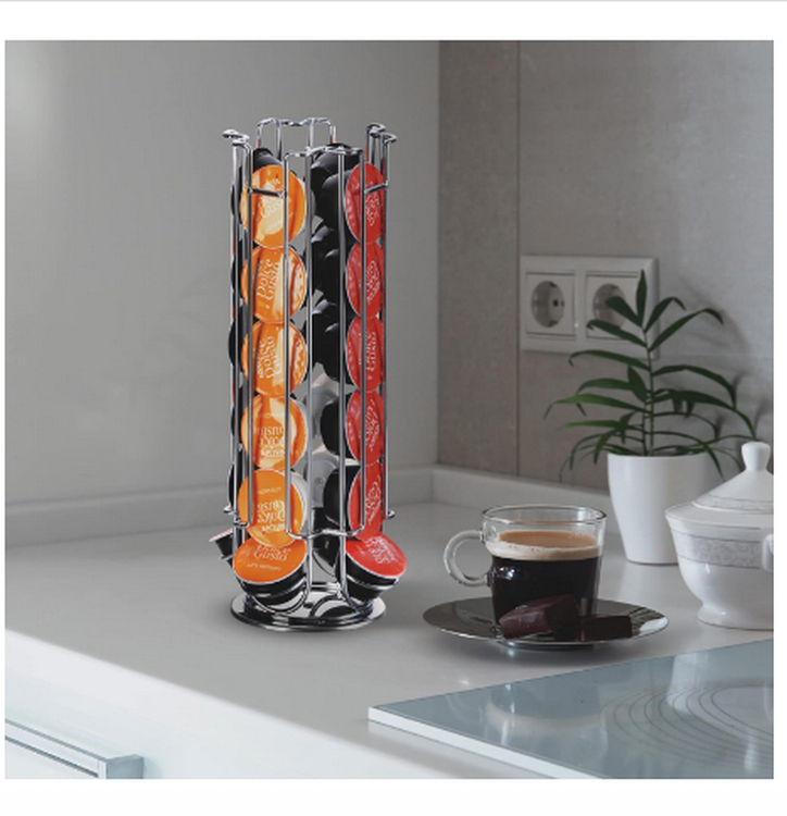 پایه نگهدارنده غلاف Dolce Gusto دارای پایه کرومی و قاب سیمی با روکش فولادی ضد زنگ است که در هر آشپزخانه مدرن طراحی شده فوق العاده به نظر می رسد.
