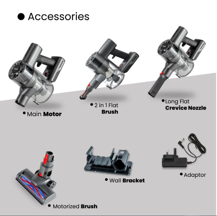 قابل تنظیم با لوازم جانبی متعدد - شامل یک سر برس موتوری اصلی برای فرش ها و کف های سخت، یک سر برس کرکی برای تمیز کردن موثر کف سخت و یک ابزار روکش داخلی 2 در 1 برای بالش های گلدوزی شده، پرده های ساتن و سایر موارد ظریف.