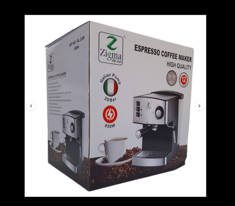 این محصول اسپرسوساز زیگما مدل RL-333 دارای توان قدرت 850 وات و دارای میزان بار 20 میباشد. جنس بدنه این محصول از ترکیب استیل و پلاستیک مقاوم در برابر ضربه میباشد. مجهز به یک مخزن 1/6 لیتری و دارای نشانگر میزان سطح آب می باشد. موارد استفاده این محصول دارای قابیلیت تهیه اسپرسو و کاپوچینو هست. دیگر ویزگی های این محصول دارای سیستم تنظیم میزان بخار هست. در قسمت جلو این محصول یک سینی تعبیه شده جهت جلوگیری از چکه شدن مواد بر روی دستگاه. ابعاد این محصول به طوری هست که به راحتی بر روی میز آشپزخانه یا در محل کار جاسازی میشود، بدون اشغال کردن فضای اضافی محیط. دارای ظاهری زیبا و قابیلیت استفاده از پودر قهوه را دارد. اسپرسوساز زیگما RL-333 مجهز به سیستم تنظیم غلظت قهوه میباشد و قابیلیت تولید کف شیر هم دارد. همراه این محصول یک تمپر قهوه میباشد و همچنین قابیلیت تنظیم میزان استفاده از اسپرسور یک نفره یا دو نفره. توصیه میشود در هنگام استفاده از محصول حتما از آب معدنی یا آب تسویه شده استفاده گردد چون باعث افزایش طول عمر محصول میشود. به دلیل وجود املاح و رسوب در آب لوله ، باعث میشود رسوب به داخل دستگاه نفوذ کند.