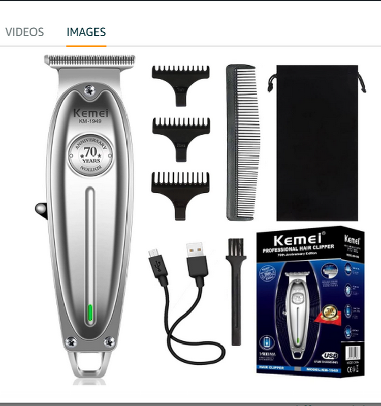 Kemei 1949 Trimmer Professional Hair Clippers for Men Zero Gap Electric Cordless Beard/Hair Trimmer Rechargeable T-Blade Haircut Machine for Stylists and Barbers Grooming Kit, Silver
