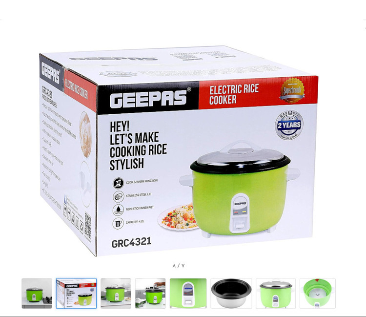 پلوپز برقی Geepas 4.2L 1600W - پخت اتوماتیک، کارکرد با یک لمس | برنج، غذا و سبزیجات سالم را بخارپز کنید GRC4321
