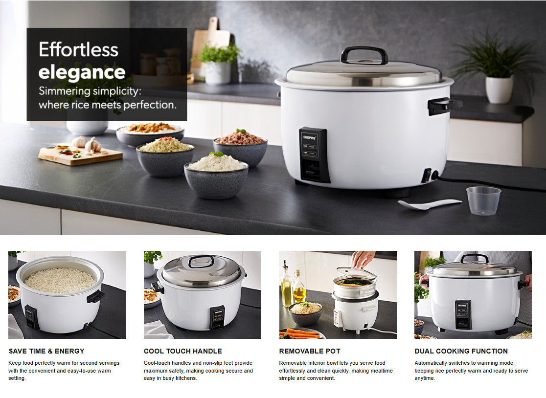 پلوپز برقی Geepas 4.2L 1600W - پخت اتوماتیک، کارکرد با یک لمس | برنج، غذا و سبزیجات سالم را بخارپز کنید GRC4321