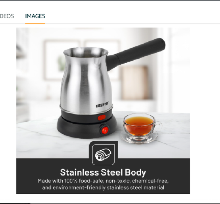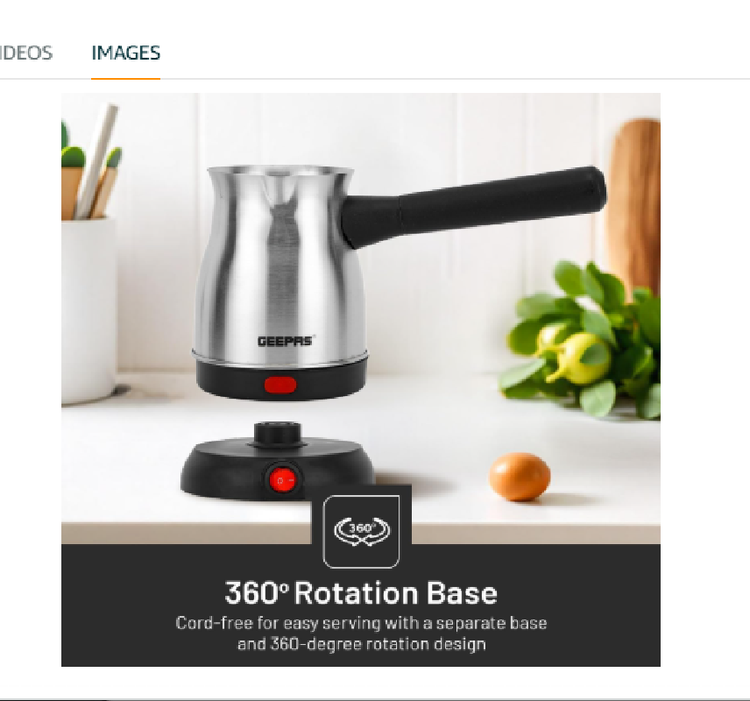 قهوه ساز ترکی Geepas Electric Steinless Steel GK38050 | ظرفیت 0.8L | چرخش 360 درجه | قطع غیر اتوماتیک | کتری قهوه برای دفتر خانه ...
