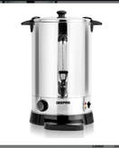 - Geepas 20 L catering urn expertly combines robust stainless steel construction with efficiency, Make steaming hot drinks in seconds, perfect for either a large home or office environment, including restaurants hotels cafes offices and parties. The water boiler/ urn is the safe way to serve drinks with a locking lid preventing spills, it also has auto shut-off and boil dry sensor functions. With 1650 W power, the water boiler/urn heats up quickly and the clear water gauge makes it easy to see when the urn needs to be re-filled.