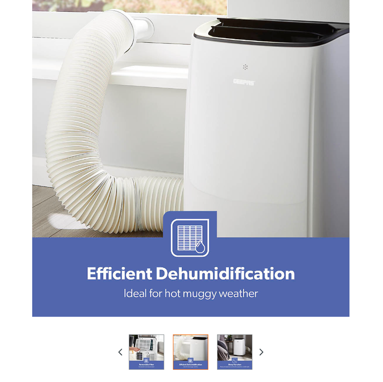 The Geepas Smart Air Conditioner 9000 BTU is a portable, energy-efficient cooling solution featuring a Class A+ rating and eco-friendly R290 refrigerant. It offers 4-in-1 functionality—cooling, dehumidifying, fan, and sleep mode—with easy digital and remote control, plus a 24-hour timer. Designed for hassle-free installation with included dual window vent kits and smooth portability via caster wheels, it’s perfect for modern homes and offices seeking smart, sustainable comfort.