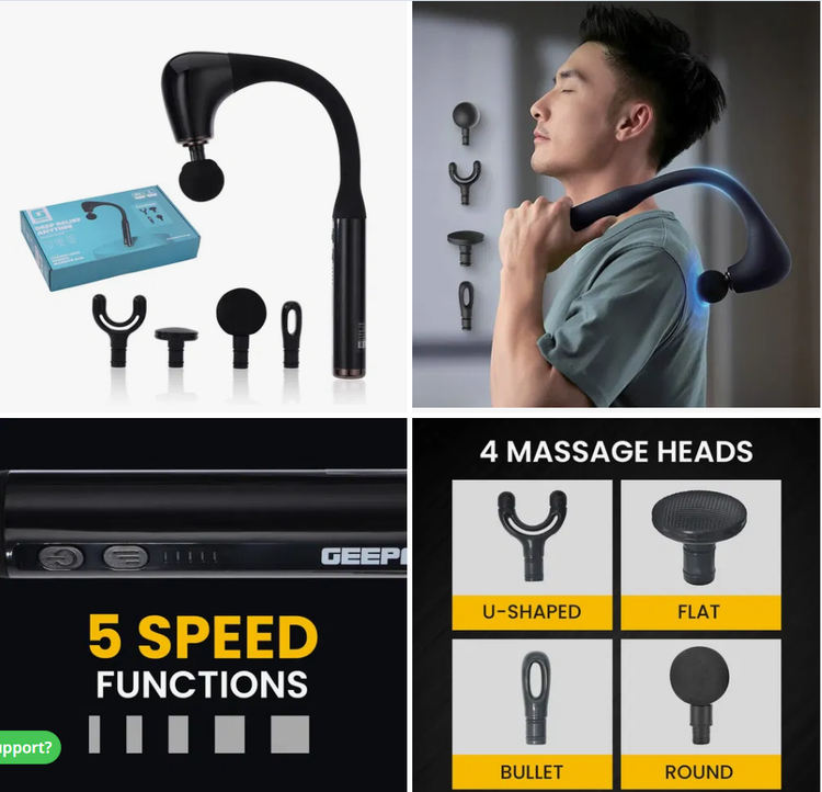 ۴ سر: این تفنگ ماساژ با سرهای ماساژ U شکل، تخت، گلولهای و گرد ارائه میشود و به شما امکان میدهد گروههای عضلانی مختلف را برای تسکین بافتهای عمیق، آرامش و بهبودی هدف قرار دهید.