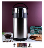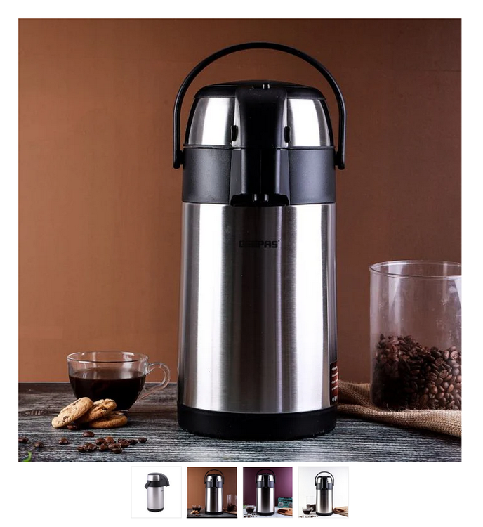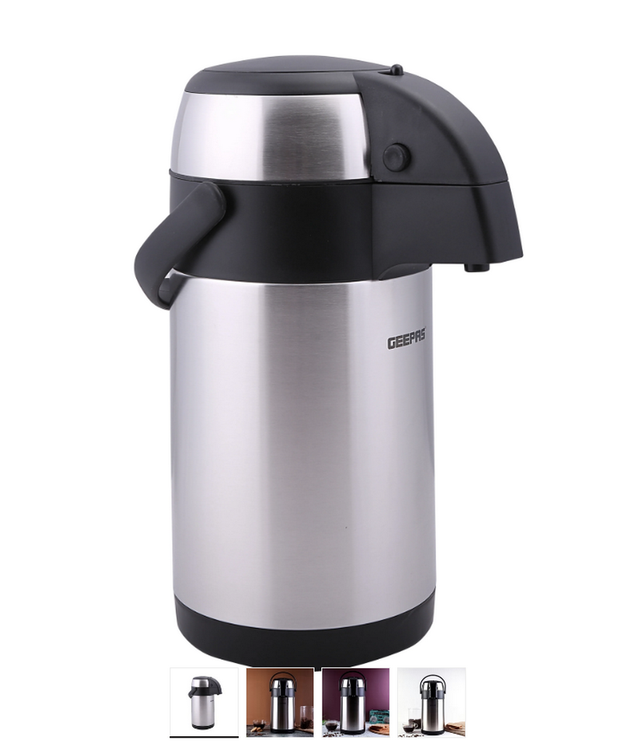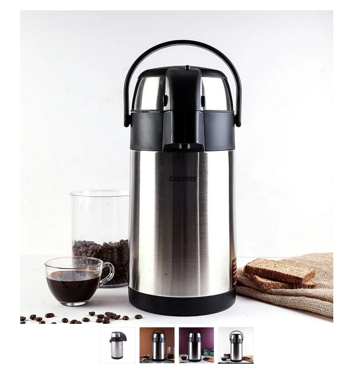فلاسک هواکش پمپی استیل ضد زنگ جیپاس، فلاسک خلاء 3.5 لیتری، GVF5263 | گرم/سرد18 تا 24 ساعت | فلاسک خلاء دو جداره برای قهوه، آب جوش، چای و موارد دیگر