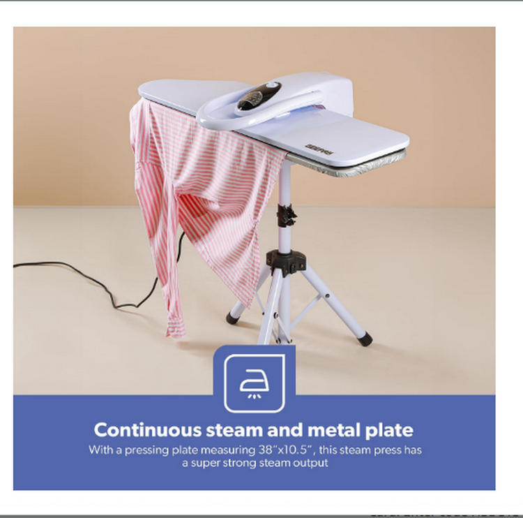 بخار مداوم و صفحه فلزی: این دستگاه پرس با صفحه پرس به ابعاد 34 در 10.5 اینچ، خروجی بخار فوقالعاده قوی 120 گرم در دقیقه و مدت زمان بخاردهی 12 ثانیه در هر بار دارد.