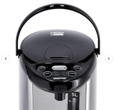 دیگ آب و گرمکن 5 لیتری Geepas دارای کنترل دمای قابل تنظیم و سیستم توزیع برقی با یک لمس می باشد. این دستگاه دارای چهار تنظیم دمای گرم نگه داشتن است: 45، 55، 65، و 85 درجه سانتیگراد. این دستگاه دمای واقعی آب را همیشه نمایش می دهد. همچنین دارای یک ویژگی صرفه جویی در انرژی یا ایمنی است که در صورت کم بودن سطح آب کتری را خاموش می کند. حالت دمای سریع آب را مستقیماً تا دمای انتخاب شده گرم نگه می دارد بدون اینکه به جوش بیاید.