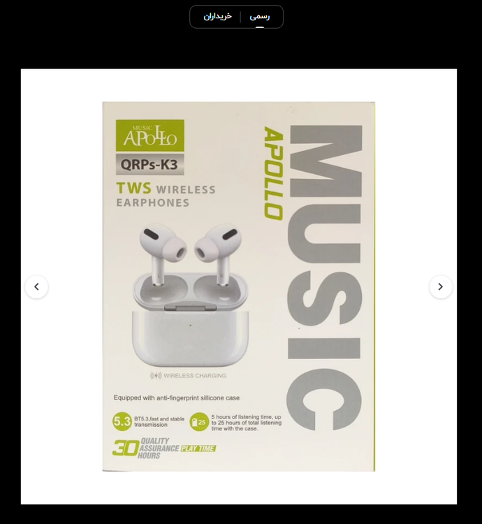 هندزفری بلوتوثی موزیک آپولو مدل PRO-TWS QRPsK3 یک هندزفری بلوتوثی بسیار با کیفیت و با قدرت است که در ساخت آن دقت و ظرافت خاصی به کار رفته است. قابلیت شارژ وایرلس از امکانات مهم این هندزفری فوق العاده است. به همراه این ایرپاد ، یک کاور محافظ کیس نیز در بسته بندی آن موجود است طراحی ارگونومیک این محصول که کاملا برگرفته از ایرپاد پرو اپل است ، باعث شده که هنگام استفادهی بلندمدت از آن هیچگونه احساس خستگی یا درد در ناحیهی گوش خود نکنید. هنگامیکه برای اولین بار هندزفری بلوتوثی موزیک آپولو مدل PRO-TWS QRPsK3 را در دست میگیرید، با یک باکس سفیدرنگ مواجه خواهید شد که با بازکردن درِ آن، هدفونها مشاهده میشوند. این باکس سفید علاوه بر نگهداری از محصول، وظیفهی شارژ آن را هم بر عهده دارد و کیس شارژ آن قابلیت شارژ وایرلس دارد. این هدفون میتواند فقط با یک بار شارژ، تا 4 ساعت شما را در پخش موسیقی همراهی کند. اگر قصد خرید یک محصول حرفهای برای گوشکردن به موسیقی یا مکالمه با کیفیت را دارید، این محصول انتخابی مطلوبی خواهد بود که تجربهی دنیای بدون سیم را برایتان به ارمغان میآورد. دقت داشته باشید که قسمت لمسی این ایرپاد ، همانند ایرپاد پرو اپل روی قسمت پایینی آن (دسته) می باشد و از دقت و کیفیت بالایی برخوردار است.