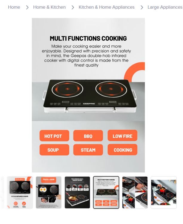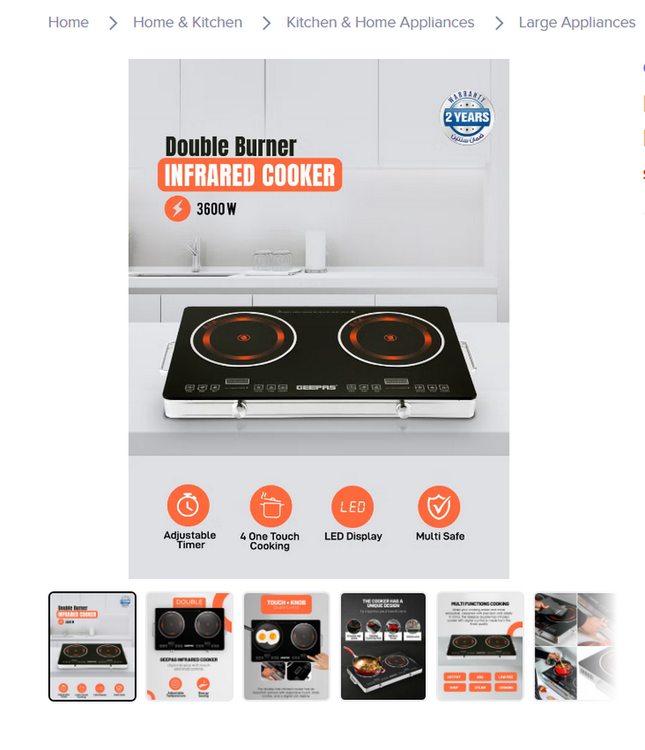 آشپزی خود را راحت تر و لذت بخش تر می کند که با در نظر گرفتن دقت و ایمنی طراحی شده است. اجاق گاز مادون قرمز دو اجاق گاز جیپاس با کنترل دیجیتال از بهترین مواد با کیفیت ساخته شده است با صفحه رویی کریستالی. اجاق گاز مدرن و شیک به رنگ مشکی جلوه میز آشپزخانه شما را بیشتر کرده اجاق گاز مادون قرمز دو اجاق گاز از مواد با کیفیت ساخته شده است که دارای سطح القایی با کنترل دکمه لمسی پاسخگو و نمایشگر دیجیتال LED است