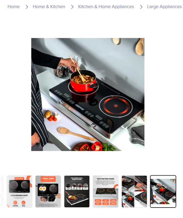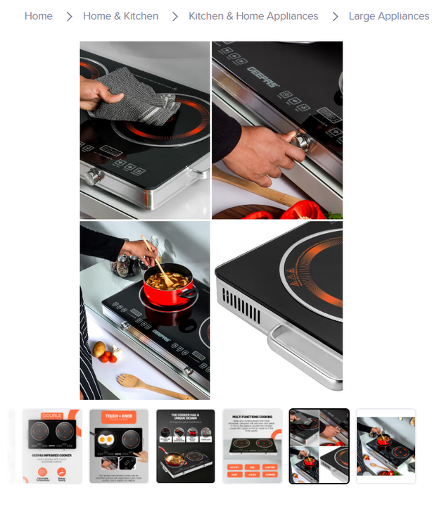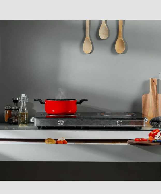 1) اجاق مادون قرمز دو شعله با صفحه کریستالی و صفحه نمایش دیجیتال با کنترل لمسی و دستگیره.