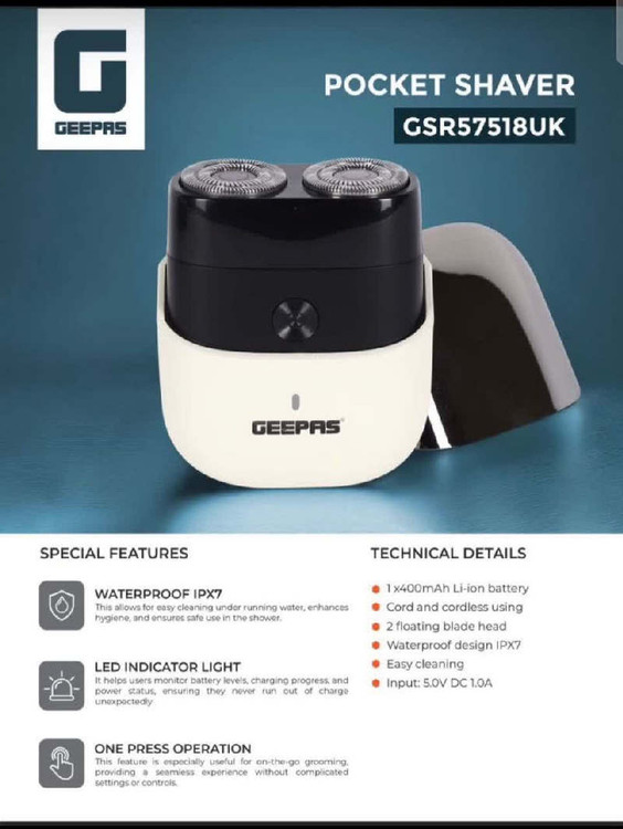 «ریشتراش جیپاس #GSR57558UK» یک ریشتراش جیبی و قابل شارژ است که برای سفر و اصلاح سریع طراحی شده است. این ریشتراش دارای تیغههای فوقالعاده تیز برای اصلاحی روان است و با USB قابل شارژ است. این ریشتراش بخشی از خط تولید جیپاس است که از جیپاس انگلستان تولید میشود و به عنوان یک وسیله ضروری برای سفر تبلیغ میشود.