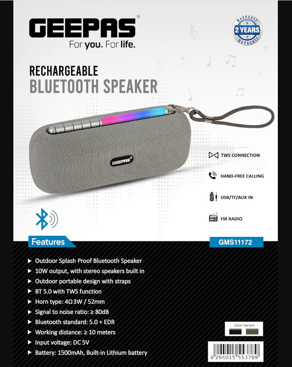 زمان پخش طولانی: این بلندگو که با یک باتری ۱۵۰۰ میلیآمپر ساعتی در یک بلندگوی بیسیم قابل حمل ساخته شده است، از پخش طولانی موسیقی (که با میزان صدا و محتوای صوتی بلندگو پخش میشود) پشتیبانی میکند. بلندگوی بلوتوث با کیفیت بالا که به موسیقی قدرت میبخشد.