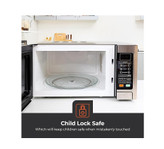۱. نمایشگر LED - یک نمایشگر LED آبی جذاب که وقتی مایکروویو فعال نیست، به عنوان ساعت یا تایمر آشپزخانه عمل میکند. ۲. عملکرد یخزدایی - این مایکروویو همچنین عملکرد یخزدایی را ارائه میدهد و به شما امکان میدهد طیف وسیعی از مواد و غذاها را یخزدایی کنید. از میگو برای سرخ کردنیهای عالی گرفته تا سینههای مرغ آبدار برای سالادهای خوشمزه، این مایکروویو میتواند مطمئن شود که هر مادهای را که نیاز دارید در عرض چند دقیقه آماده دارید. ۳. ساعت دیجیتال - صفحه نمایش LED با خوانایی آسان، ساعت دیجیتال را روشن میکند و هر تنظیم پخت را برجسته میکند. ۴. قفل کودک - صفحه کنترل را با استفاده از گزینه قفل ایمنی کودک قفل کنید تا از استفاده یا دسترسی تصادفی کودکان جلوگیری شود. ۵. صفحه گردان شیشهای - صفحه گردان شیشهای بزرگ امکان پخت یکنواخت را فراهم میکند و برای تمیز کردن آسان قابل جدا شدن است.