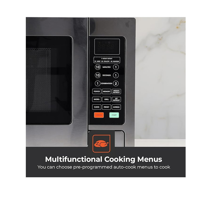 ✅تنظیمات سریع گرم کردن مجدد و یخزدایی - چه در حال گرم کردن مجدد غذاهای مانده از شب قبل باشید و چه در حال یخزدایی غذا، این قابلیت به شما امکان میدهد به راحتی یخزدایی کنید و با دمای سریع، میتوانید به سرعت غذا بپزید. دکمههای دستی به شما این امکان را میدهند که به راحتی تنظیمات دما و تایمر مورد نیاز را انتخاب کنید.