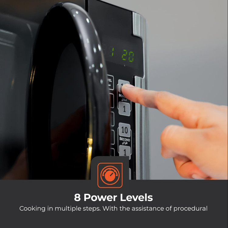 پنل کنترل عربی - با مایکروویو چند منظوره جیپاس، میتوانید منوهای پخت خودکار از پیش برنامهریزی شده مانند پیتزا، ماهی و پاپ کورن را برای پخت انتخاب کنید و قبل از پخت و پز، زمان یخزدایی را با صفحه نمایش دیجیتال انتخاب کنید تا در زمان و تلاش خود صرفهجویی کنید. فقط ظرفی را که میخواهید بپزید انتخاب کنید، «شروع» را فشار دهید و چیز جدیدی تهیه کنید.