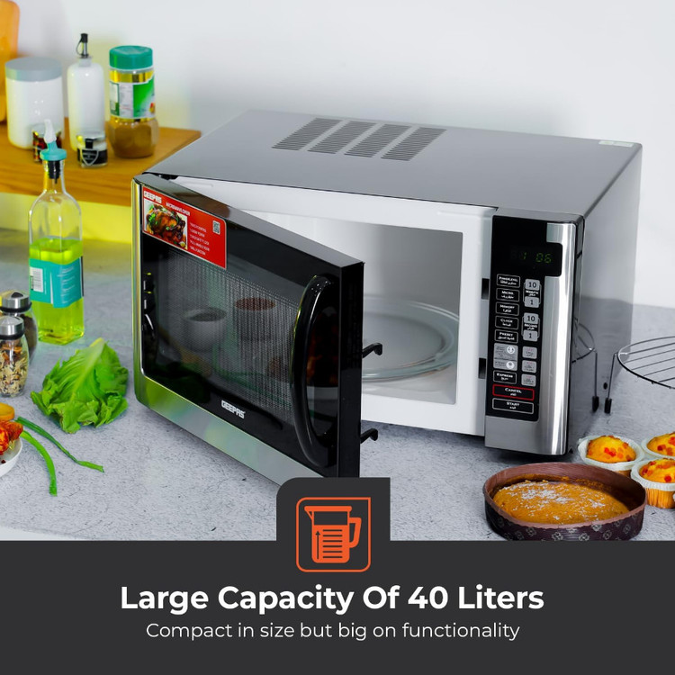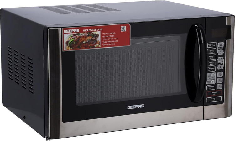 مایکروویو دیجیتال جیپاس مدل GMO1898 با ظرفیت ۴۰ لیتر و توان ۱۵۰۰ وات، منوی پخت چندگانه با صفحه کنترل عربی | گرم کردن مجدد و یخزدایی عملکرد | دستگیره درب، دیجیتال.