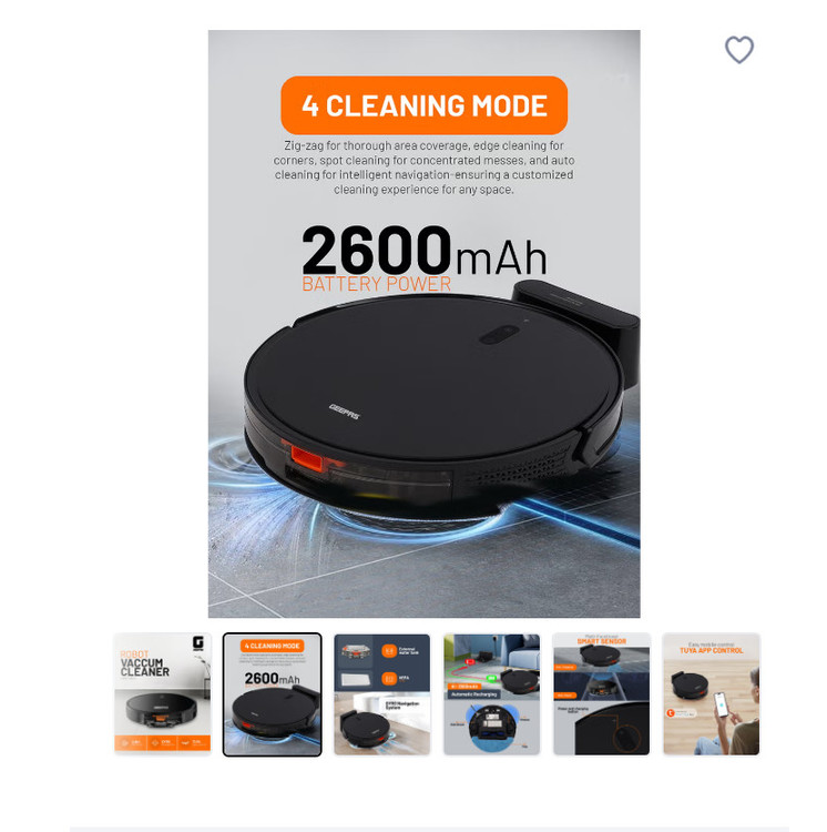 با جاروبرقی رباتی Geepas GRVC19057، یک راهکار نظافت قدرتمند و هوشمند که برای تمیز نگه داشتن خانه شما طراحی شده است، با نظافت دستی خداحافظی کنید. این دستگاه دو در یک، هم عملکرد جاروبرقی و هم تی کشیدن را ارائه میدهد و آن را برای کفهای سخت و فرشهای کمپرز ایدهآل میکند.