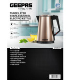 کتری برقی سه لایه استیل ضد زنگ جیپاس ۱.۷ لیتری- GK38033| دارای سیستم محافظت در برابر جوش آمدن و قطع خودکار| مناسب برای جوشاندن آب، شیر و چای