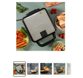۳ در ۱ با ۴ صفحه جداشدنی صفحات با پوشش نچسب چراغهای نشانگر آماده به کار و روشن بودن دستگاه دسته لمسی خنک پایههای مقاوم در برابر لغزش تمیز کردن آسان تزئینات بزرگ از جنس استیل ضد زنگ محافظت در برابر گرمای بیش از حد کنترل خودکار دما باز شدن صفحه تا ۱۸۰۰AC220-240V 50-60Hz 1400W