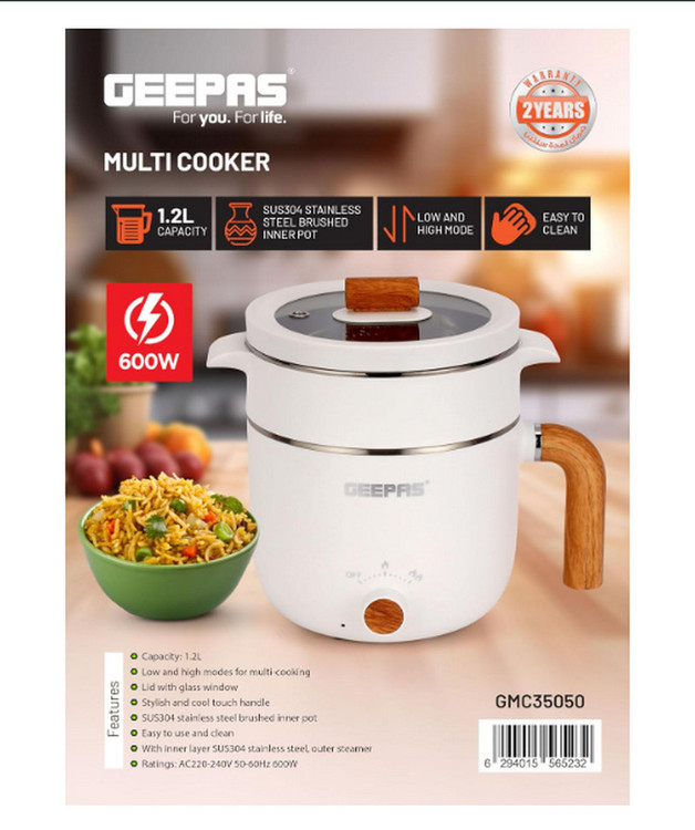 ظرفیت و درب بزرگ با پنجره شیشه ای: این مولتی پز Geepas دارای ظرفیت 1.2 لیتری است که برای خانواده های کوچک و بزرگ مناسب است. همچنین درب آن دارای یک پنجره شیشهای است که میتوانید با خیال راحت و آسوده غذاهای مورد علاقه خود را زیر نظر بگیرید و بپزید.