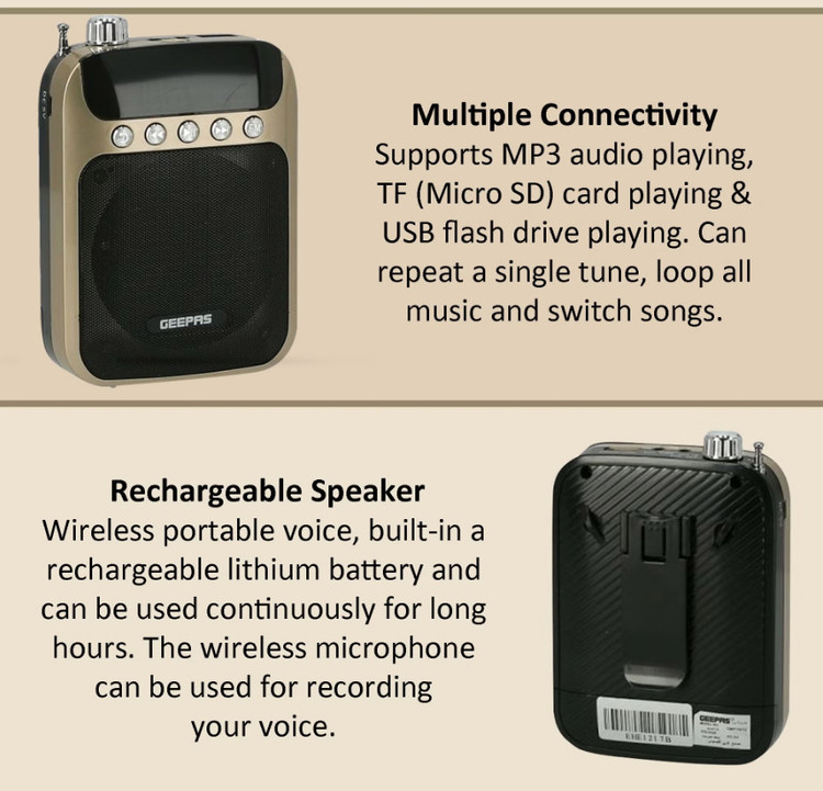 این بلندگوی قابل شارژ جیپاس دارای یک تقویت کننده صدای UHF است که با خروجی شام 5 وات، صدای خوبی ارائه میدهد و صدایی واضح، طبیعی و شفاف تولید میکند که صدای اتاق را پر میکند.