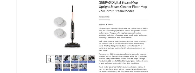 تمیز کردن سریع و آسان با قدرت ۱۳۸۰ وات: با قدرت بخار ۱۳۸۰ وات و دو سر تمیزکننده، این تی برای تمیز کردن کارآمد، حتی در نقاط صعبالعبور طراحی شده است. این تی دارای ۲ پد میکروفایبر قابل شستشو با ماشین لباسشویی است که آن را به یک محلول تمیزکننده قابل استفاده مجدد و مقرون به صرفه تبدیل میکند.