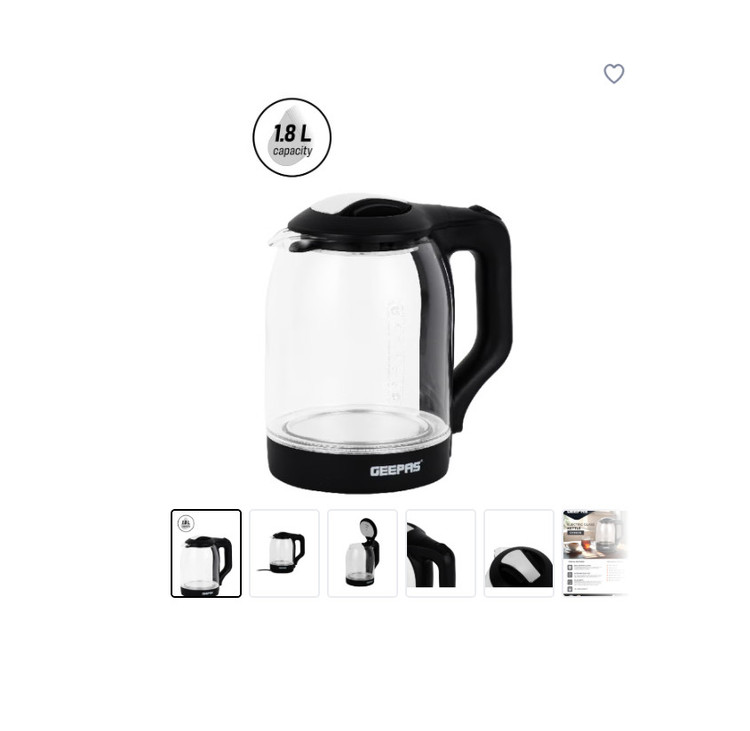 ظرفیت بالا: این کتری بزرگ با بدنه شیشهای ۱.۸ لیتری، برای جوشاندن آب، شیر و دم کردن چای و قهوه ایدهآل است.