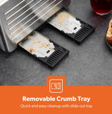 Slide-out crumb tray in 4-slice toaster ensures easy, mess-free cleanup and maintains kitchen hygiene.
