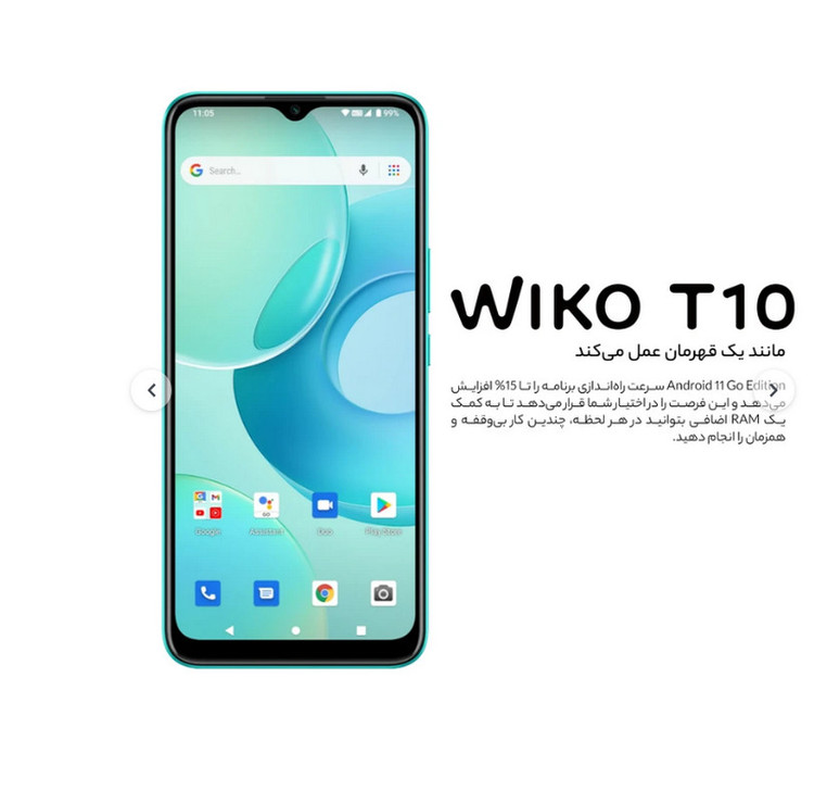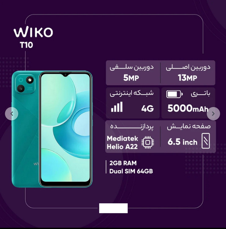 ویکو برند تازه وارد به عرصه گوشیهای هوشمند است که محصولاتی ارزان قیمت و میانردهای را روانه بازار کرده که توانایی ارائه عملکرد خوبی با توجه به مشخصات فنی در نظر گرفته شده دارند. ویکو T10یکی از گوشیهای میانرده این شرکت است که بسیار مناسب برای آن دسته از افرادی است که میخواهند با هزینهای کمتر گوشی هوشمندی را خریداری کنند که توانایی ارائه عملکرد خوبی در اجرای فعالیتهای روزانه را داشته باشد. این گوشی به صفحهنمایش با ابعاد 6.5 اینچ و رزولوشن 720×1600 پیکسل مجهز شده است. طراحی ناچ واتردراپ برای صفحهنمایش در نظر گرفته شده که بریدگی قطرهای شکل ناچ در قسمت بالایی و مرکزی صفحهنمایش، سنسور دوربین سلفی با رزولوشن 5 مگاپیکسل مجهز شده است. در قسمت پشتی هم یک سنسور دوربین اصلی با رزولوشن 13 مگاپیکسل در نظر گرفته شده که برای ثبت تصاویر در نور روز، عملکرد قابل قبولی دارد. پردازنده هلیو A22 مدیاتک چهار هستهای با توانایی ارائه حداکثر فرکانس کاری 2.0 گیگاهرتز، عملکرد کاملا قابل قبولی در اجرای فعالیتهای روزمره و برنامههای کاربردی دارد. انتخاب بسیار خوب باتری با میزان ظرفیت 5000 میلیآمپرساعت هم امکان استفاده نزدیک به دو روز را در شرایط استفاده معمولی از این گوشی برای شما فراهم کرده است.