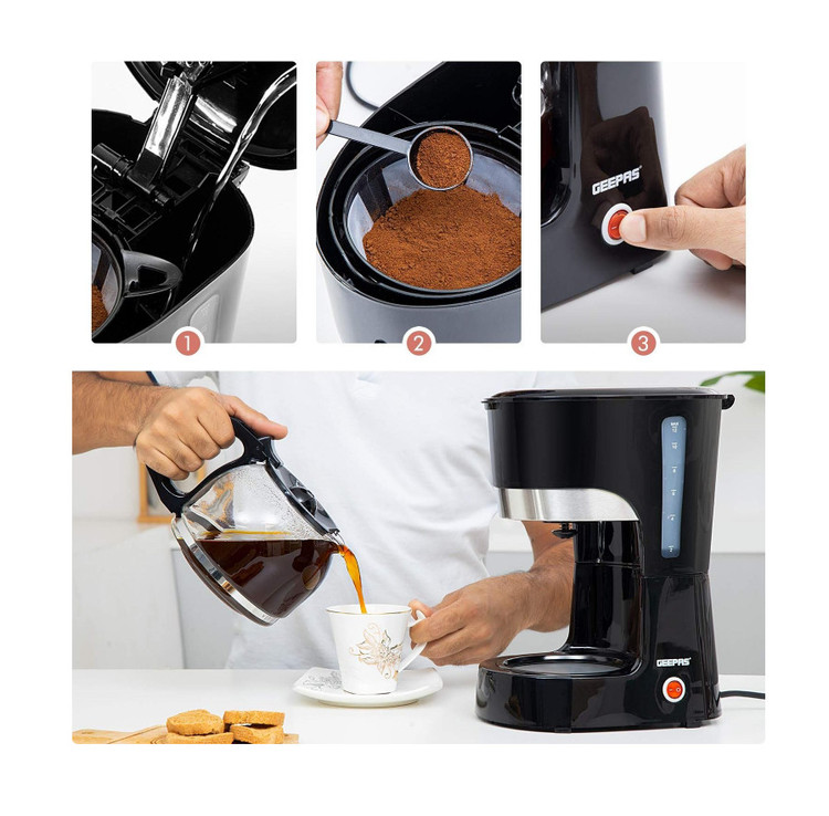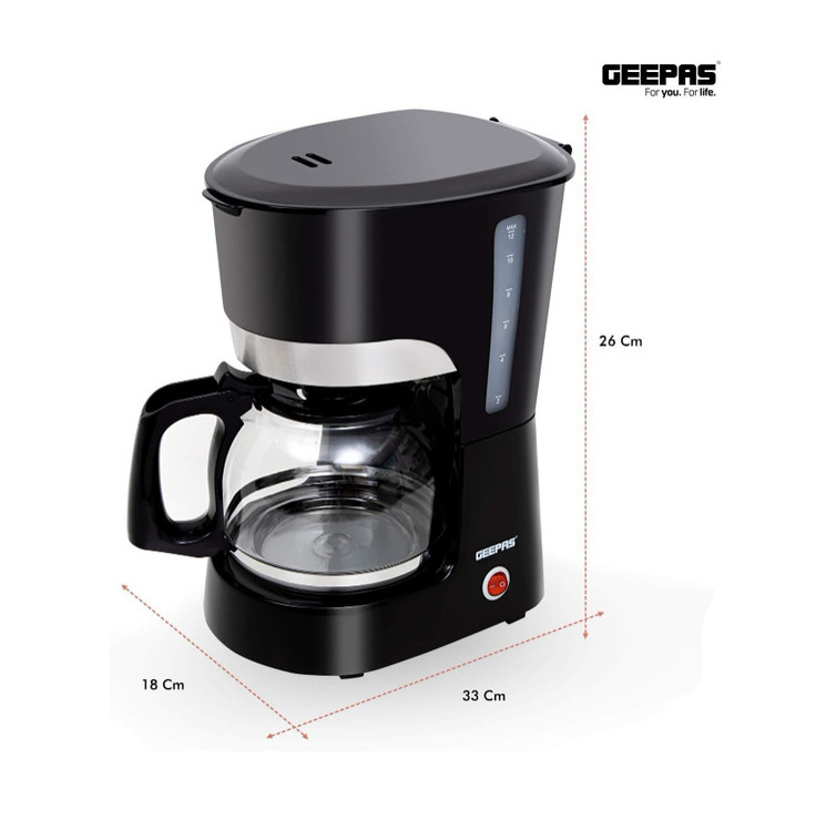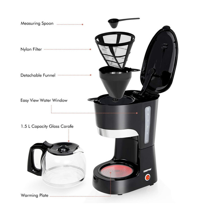 دستگاه قهوه ساز فیلتردار GEEPAS 1.5 لیتری | قهوه ساز 800 واتی برای قهوه فوری، اسپرسو، ماکیاتو و موارد دیگر | محافظ در برابر جوش آمدن آب، عملکرد ضد چکه، قابلیت خاموش شدن خودکار