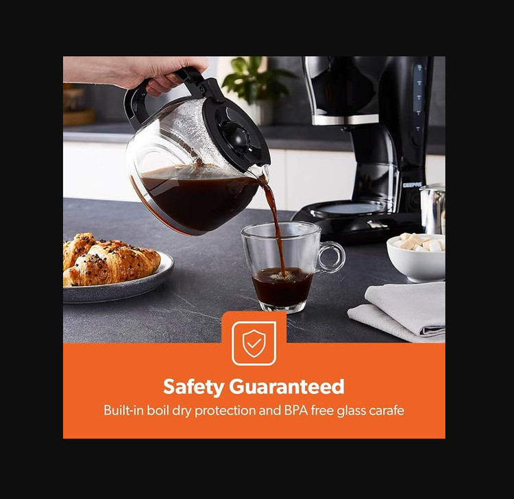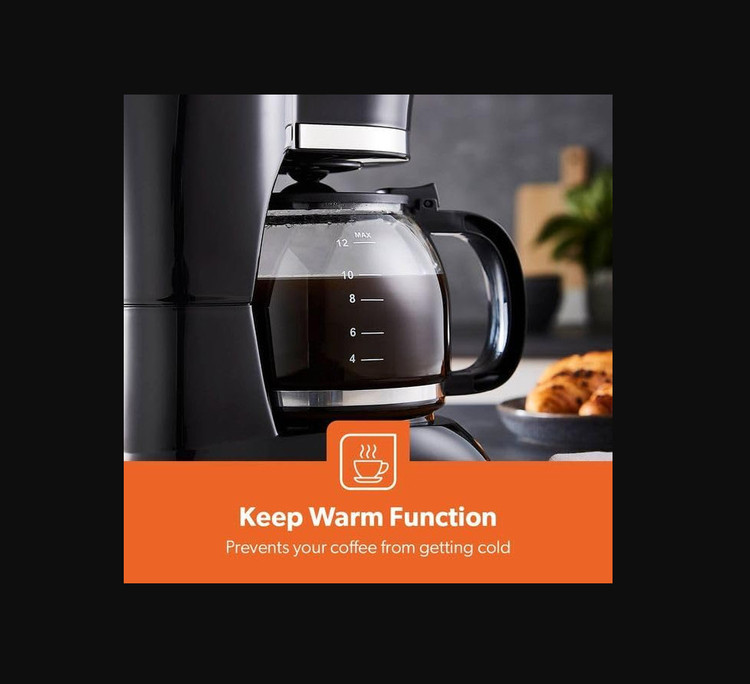 Brews up to 12 cups, ideal for families, offices & gatherings, delivering fresh, rich coffee for everyone to enjoy.
