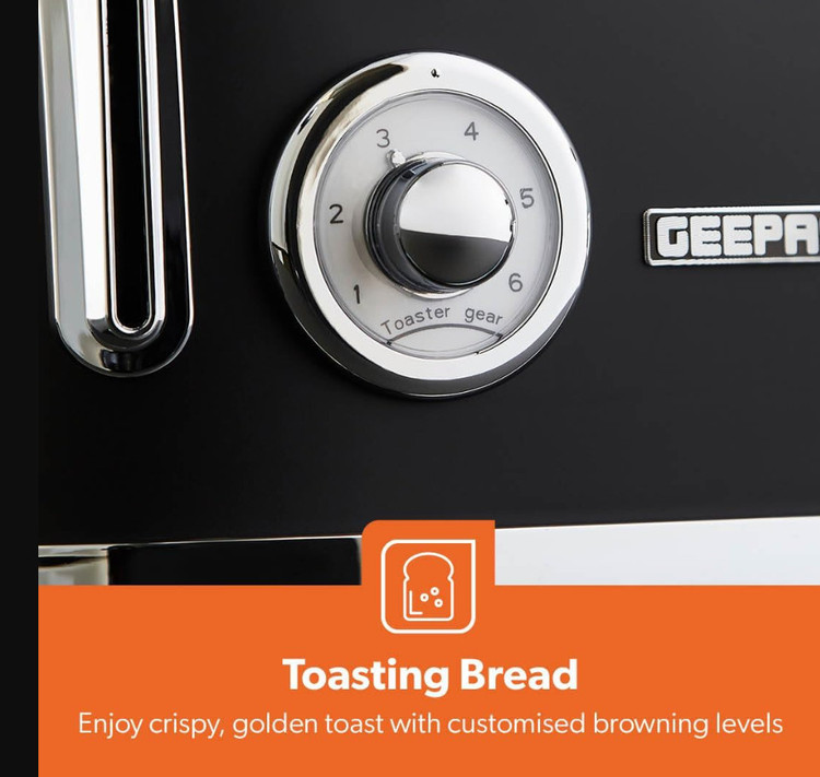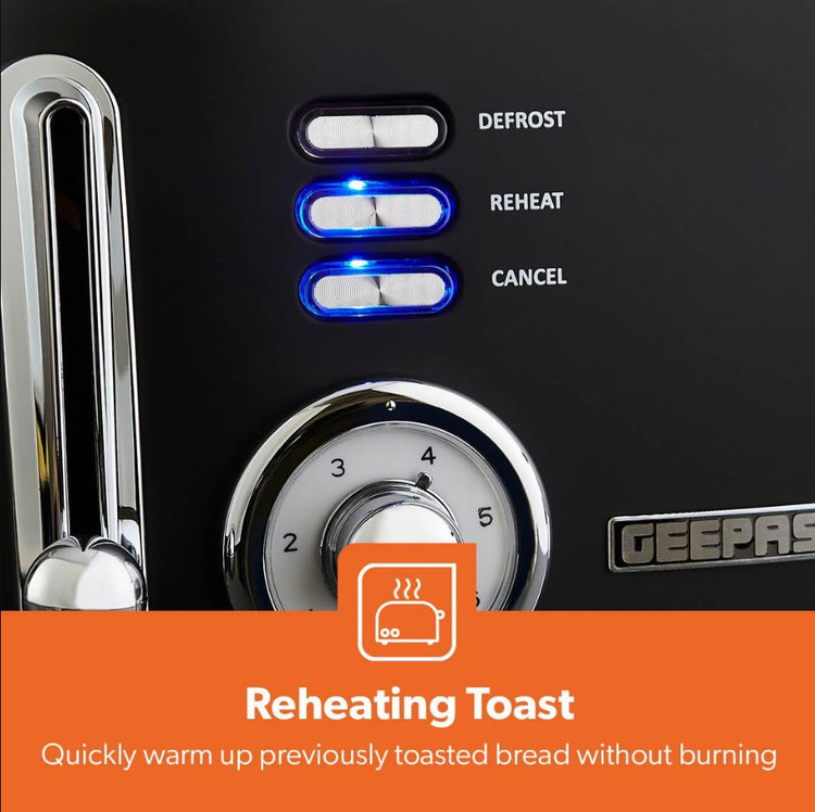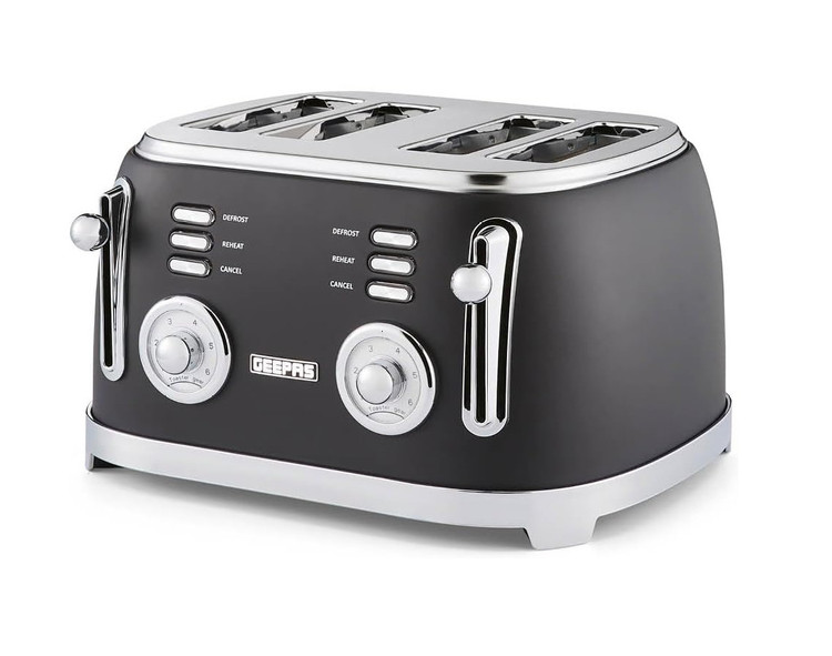 توستر نان GEEPAS 4 تکه | شیار بسیار عریض، 6 سطح برشته شدن | قابلیت یخزدایی/گرم کردن مجدد/لغو | سینی خرده نان جداشدنی | پایههای ضد لغزش خارجی با قابلیت خنککنندگی | محل نگهداری سیم برق 1500 وات | مشکی