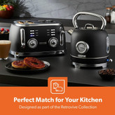 ✅ - جذابیت  و ماندگار - عصر طلایی صبحانه را با مجموعه رتروویو - جایی که طراحی قدیمی با عملکرد مدرن ترکیب میشود - بازگردانید. این توستر ۴ تکهای با روکش مشکی ملایم، سبک نوستالژیک را با کاربردی بودن روزمره ترکیب میکند. توستر هوشمند برای دوستداران زیباییشناسی قدیمی و دکوراسیون آشپزخانه بیزمان عالی است.