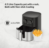 سرخ کن هوا Geepas- GAF37541/ قابلمه 4.5 لیتری با قفسه، با فناوری سرخ کردن هوای گردابی/ چند کاره، تایمر 1-30 دقیقه، دمای 100-200 درجه سانتیگراد/ ایده آل برای سیب زمینی سرخ شده، استیک، مرغ، کیک، گوشت، نان و غیره. رنگ ترکیبی مشکی با نقره ای